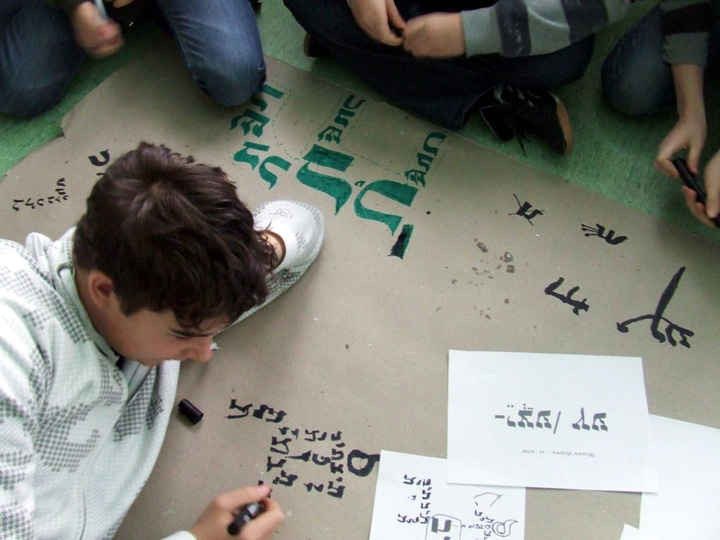 That day did not exhaust the ideas for an imaginative, enthusiastic coming together. What is the most effective way of conveying knowledge to teenagers? Everyone knows that it’s by getting them to do something. Workshops were organized in a Grodzisk intermediate school with the participation of educators from the Museum of the History of the Polish Jews. Preparing a Sabbath supper together, the students learned about customs connected with that day, and by reading source texts they created a map of prewar Grodzisk with the synagogue, mikveh, and Jewish-run shops. They used Hebrew letters to make color illustrations and the signs of the Hebrew alphabet grew into exotic animals from a fairy tale. The works of Isaac Bashevis Singer inspired other images.